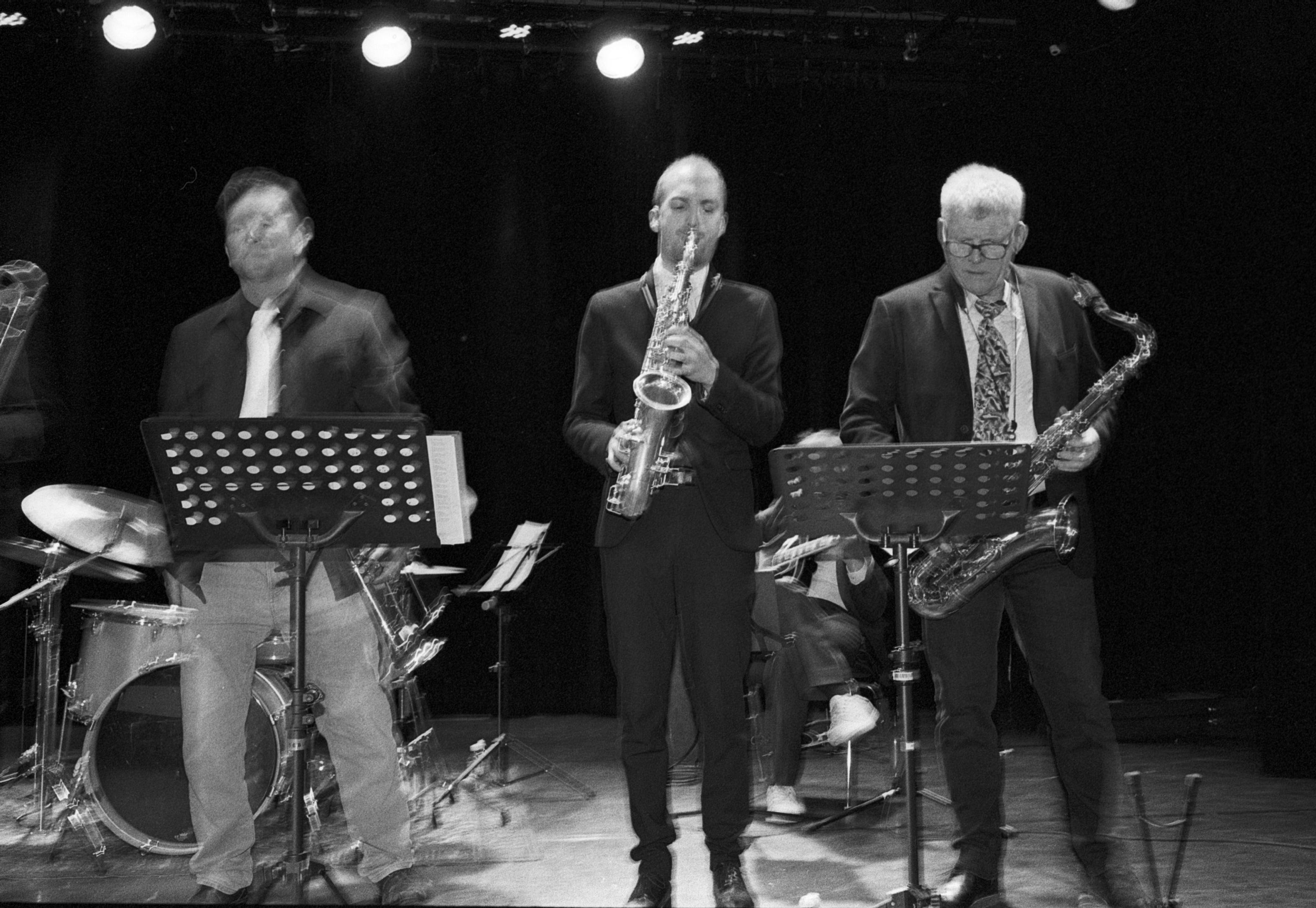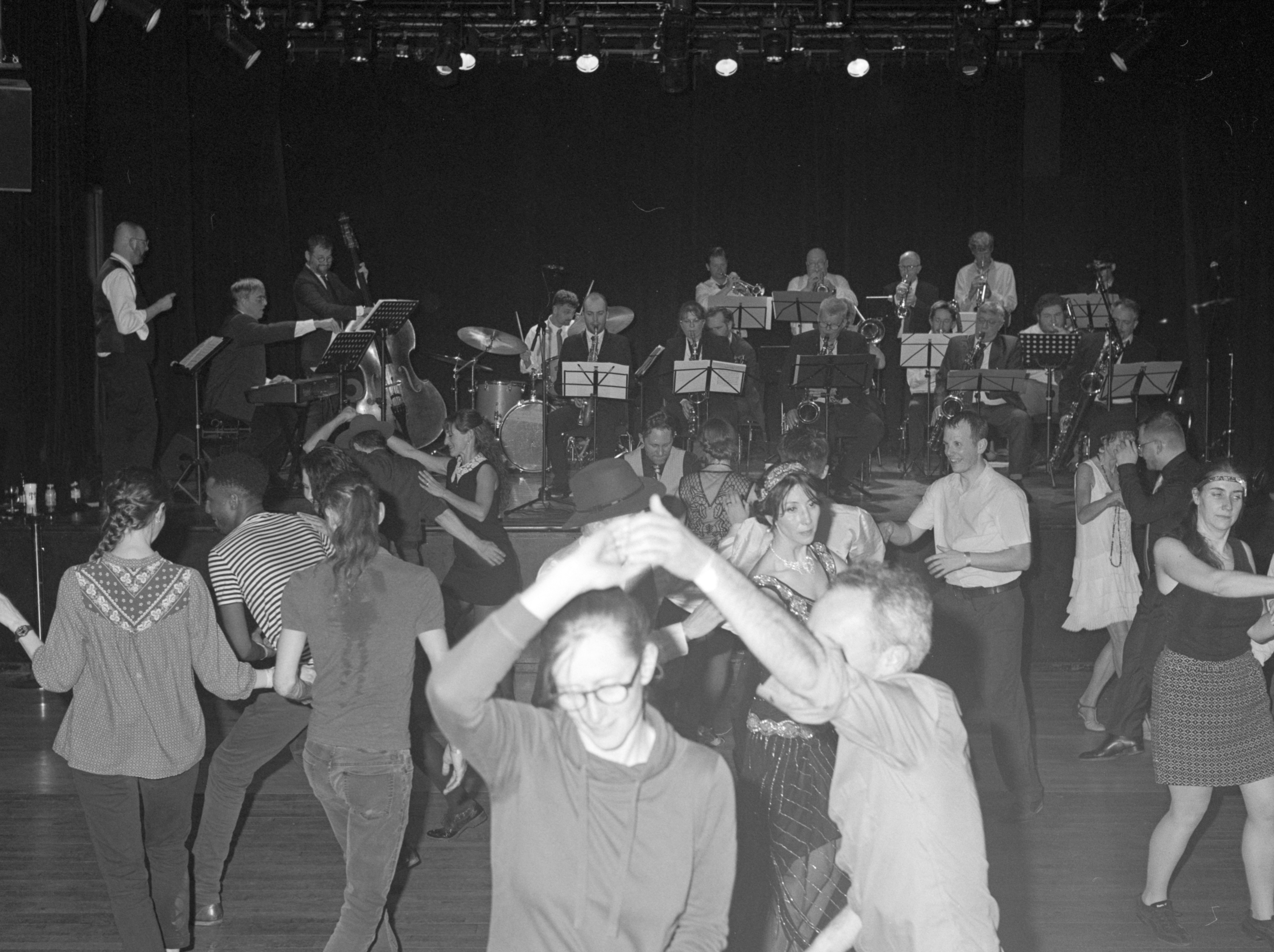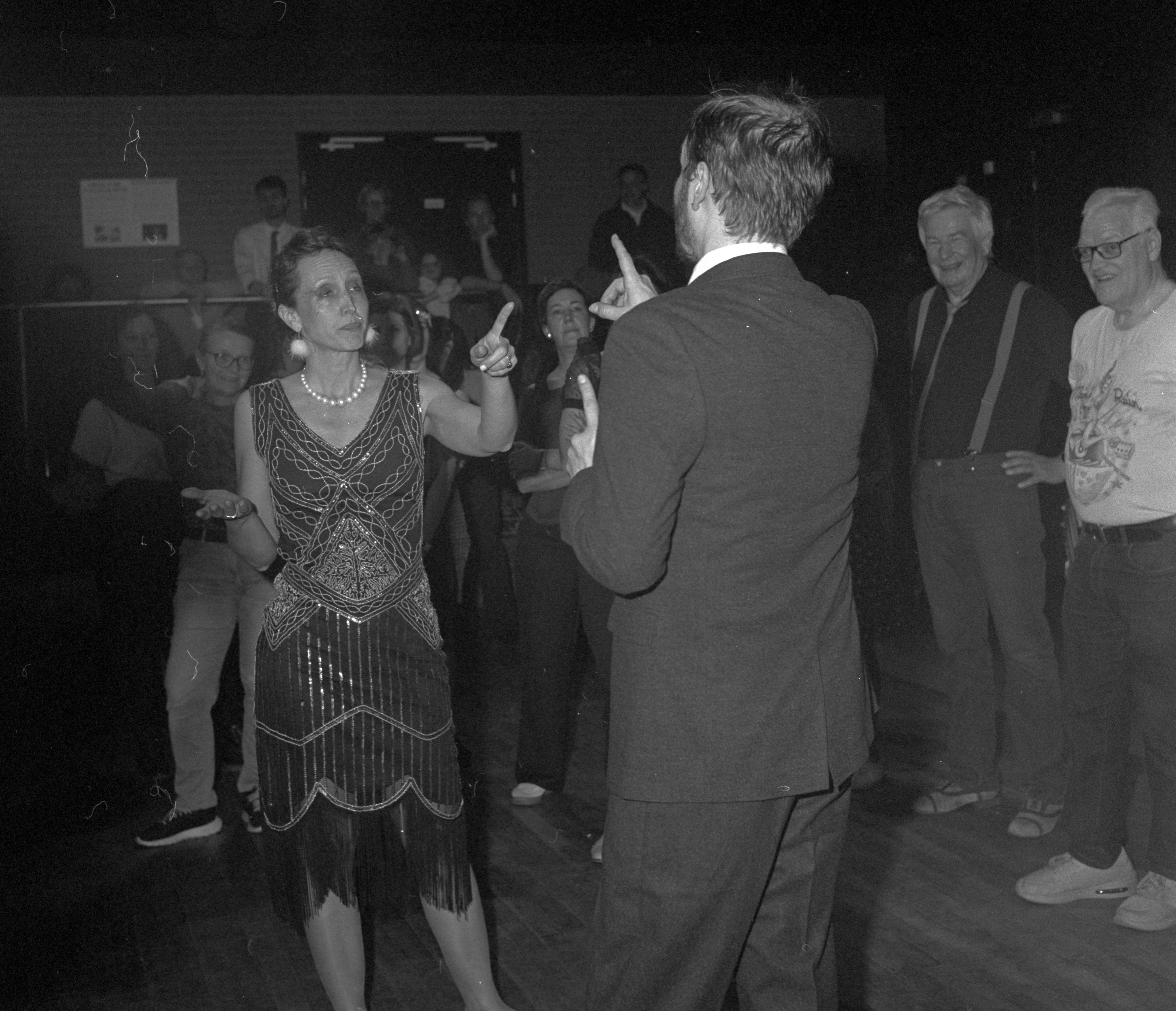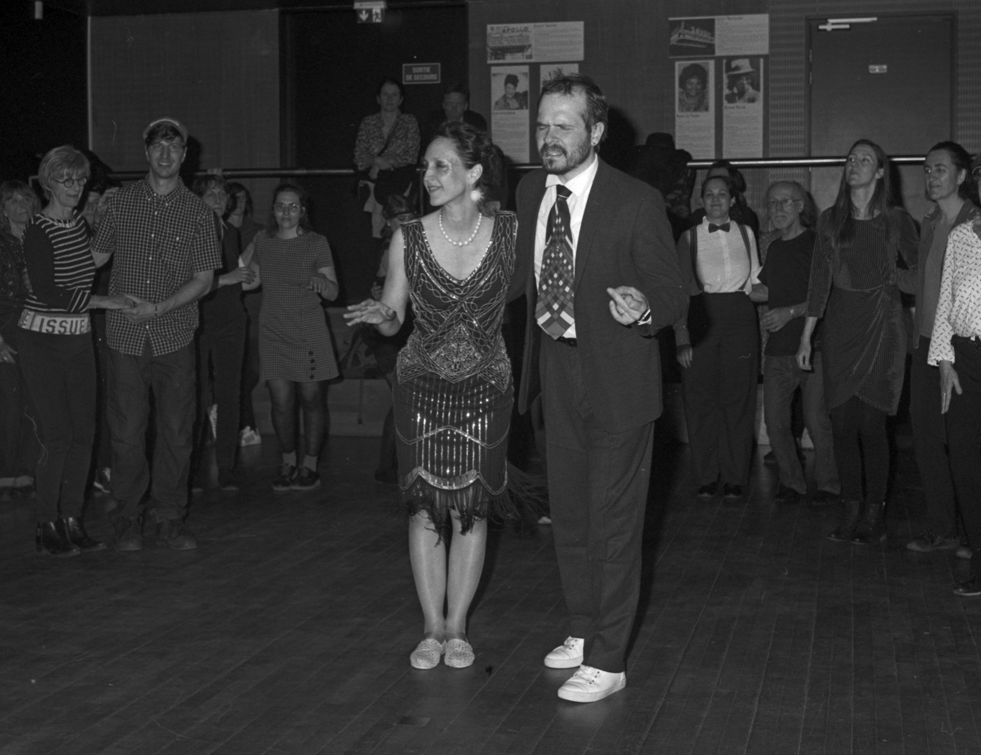 Le temps d’une soirée, la salle s’est transformée en véritable machine à remonter le temps : un big band jazzy faisait vibrer la piste, un duel de batteries a électrisé le public, et les danseurs – habillés avec soin dans le style des années 30 – redonnaient vie à cette époque joyeuse et rythmée.