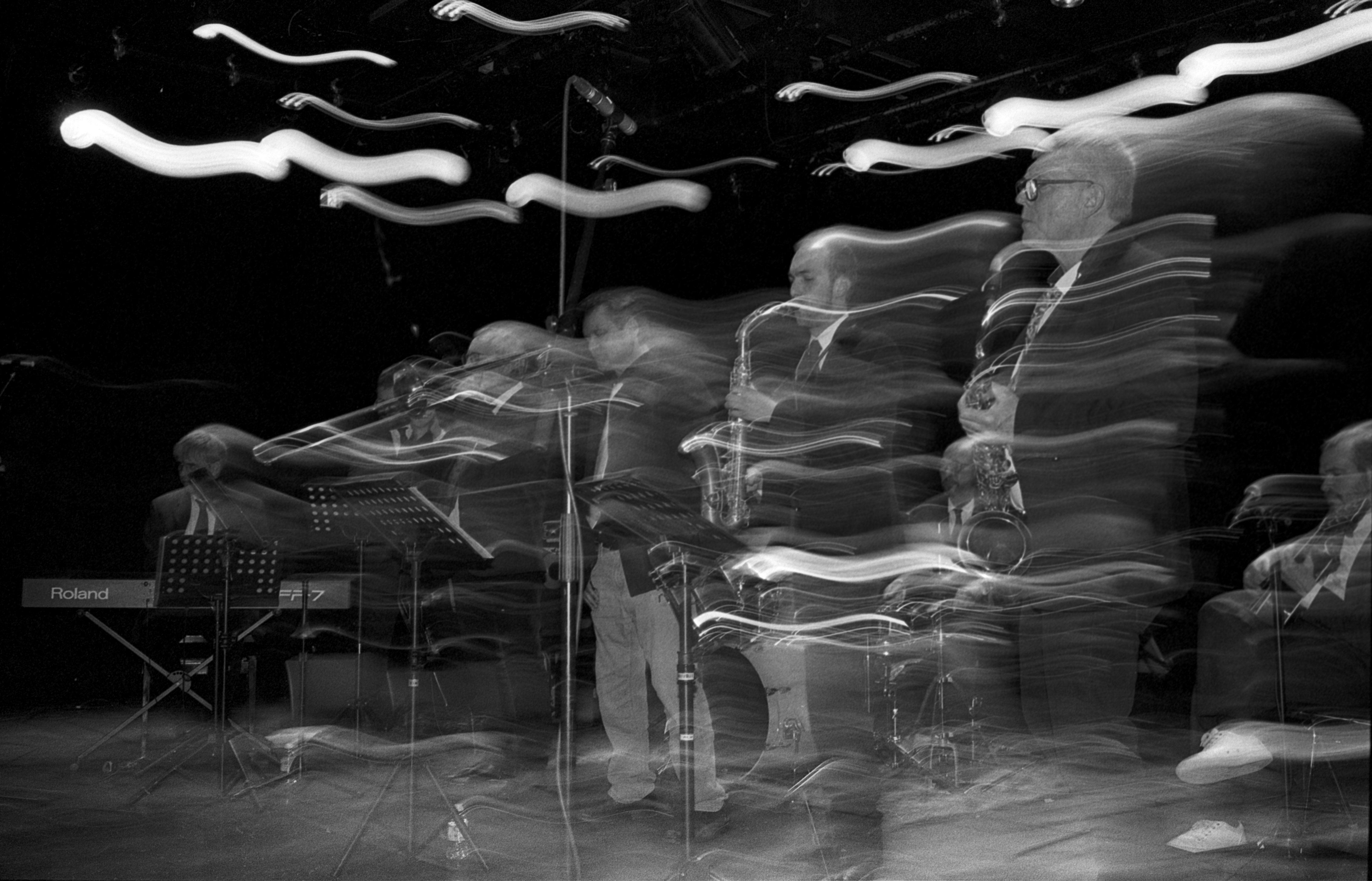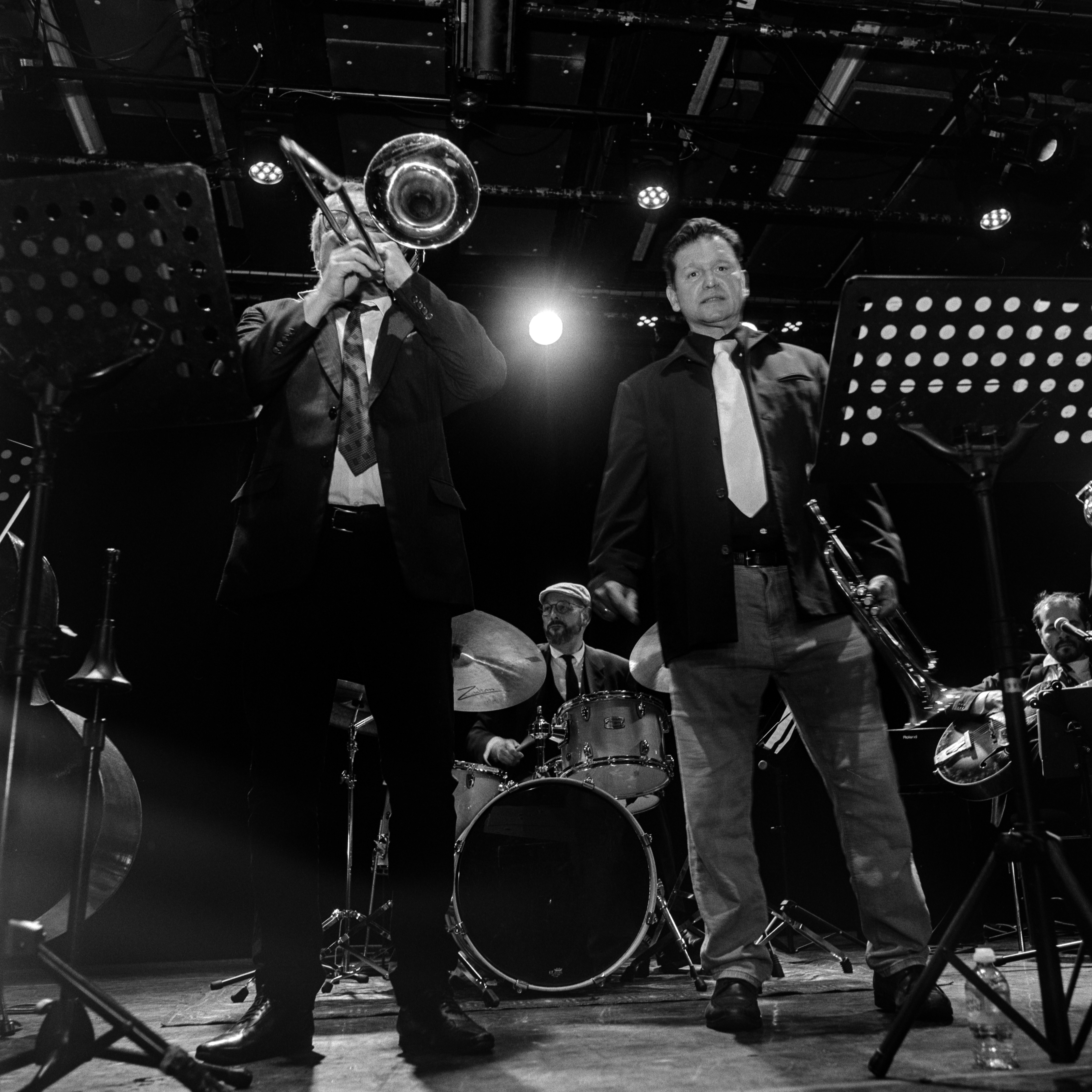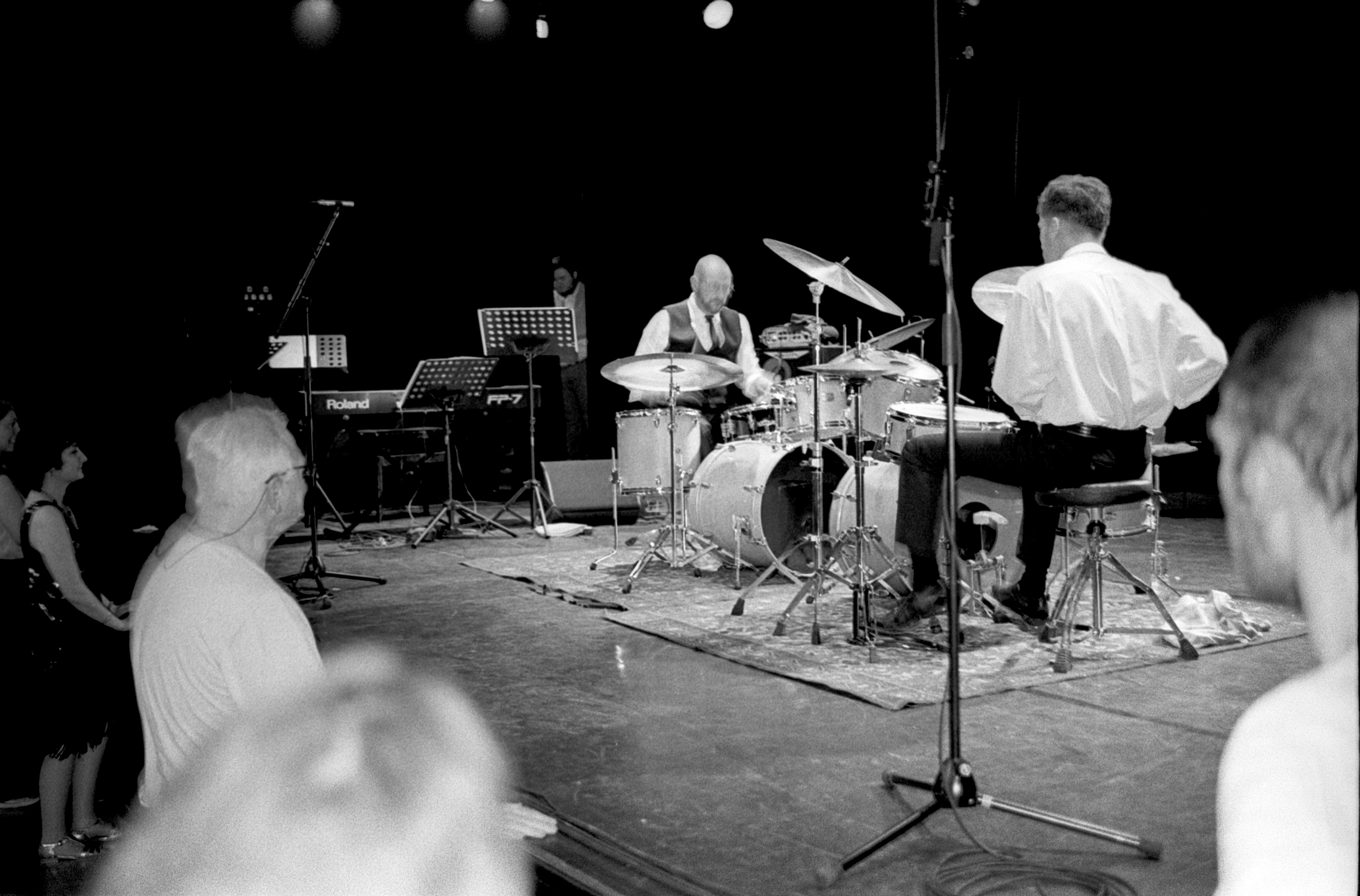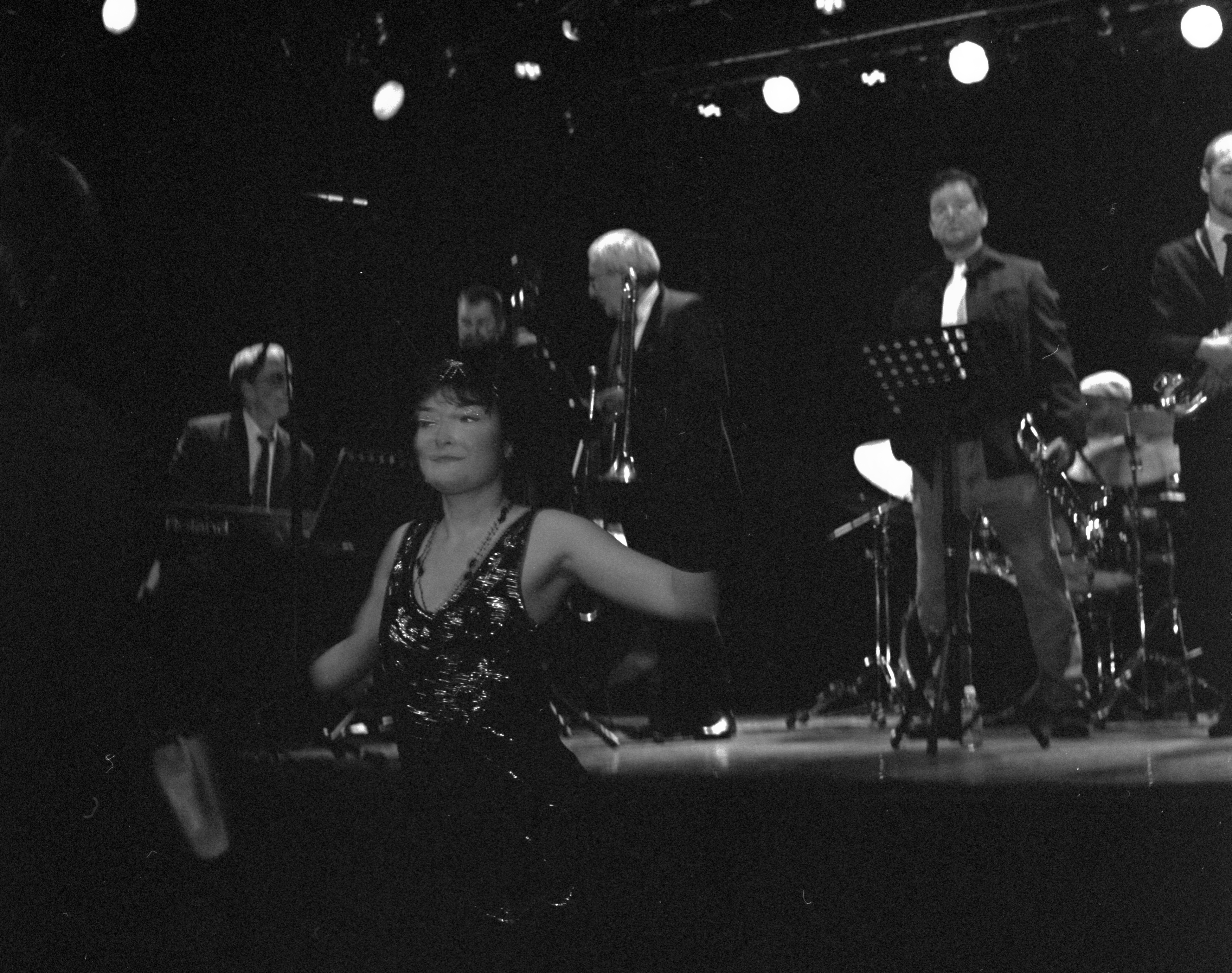 Le temps d’une soirée, la salle s’est transformée en véritable machine à remonter le temps : un big band jazzy faisait vibrer la piste, un duel de batteries a électrisé le public, et les danseurs – habillés avec soin dans le style des années 30 – redonnaient vie à cette époque joyeuse et rythmée.